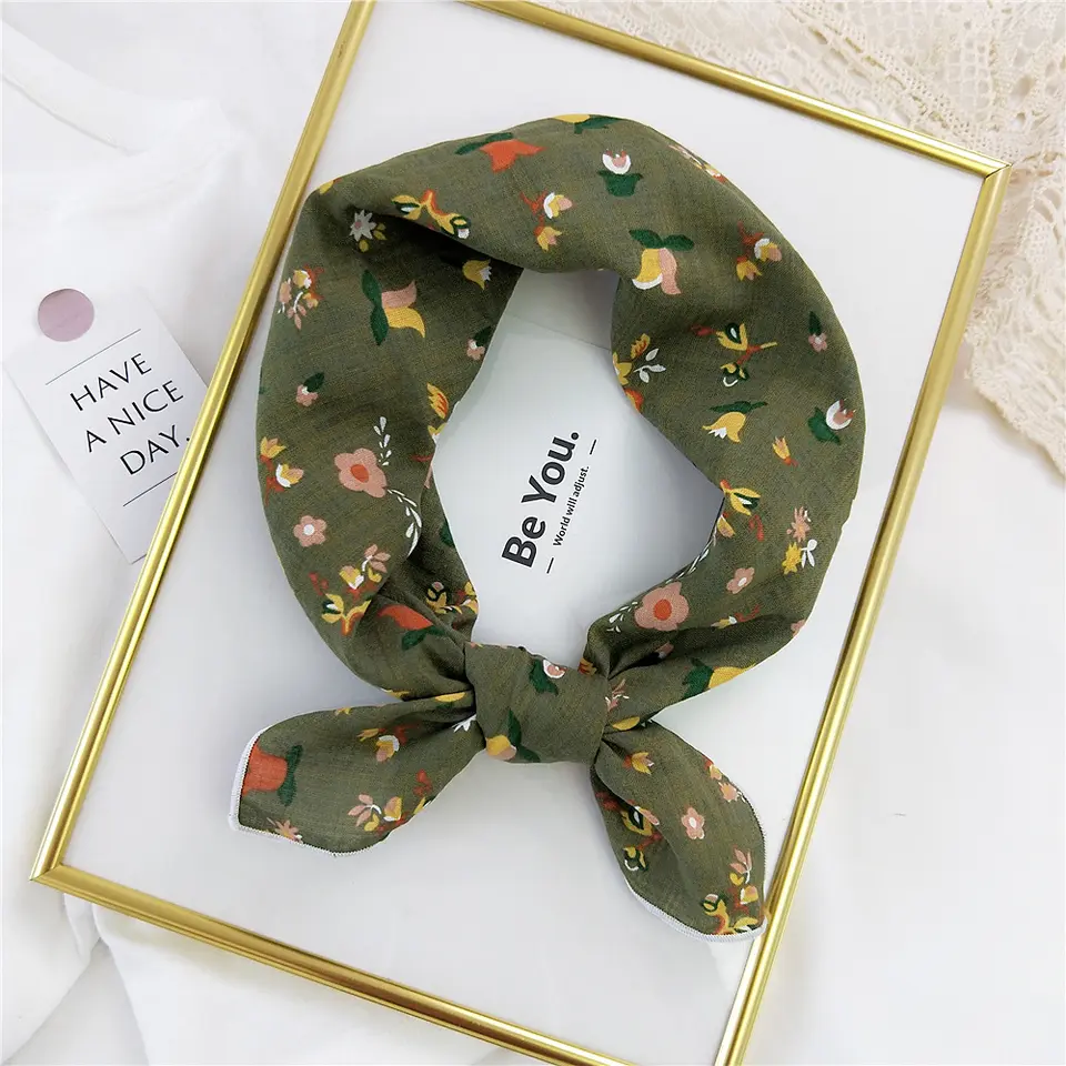 Lekkert tørkle med sommerlig mønster i delikat grønnfarge.