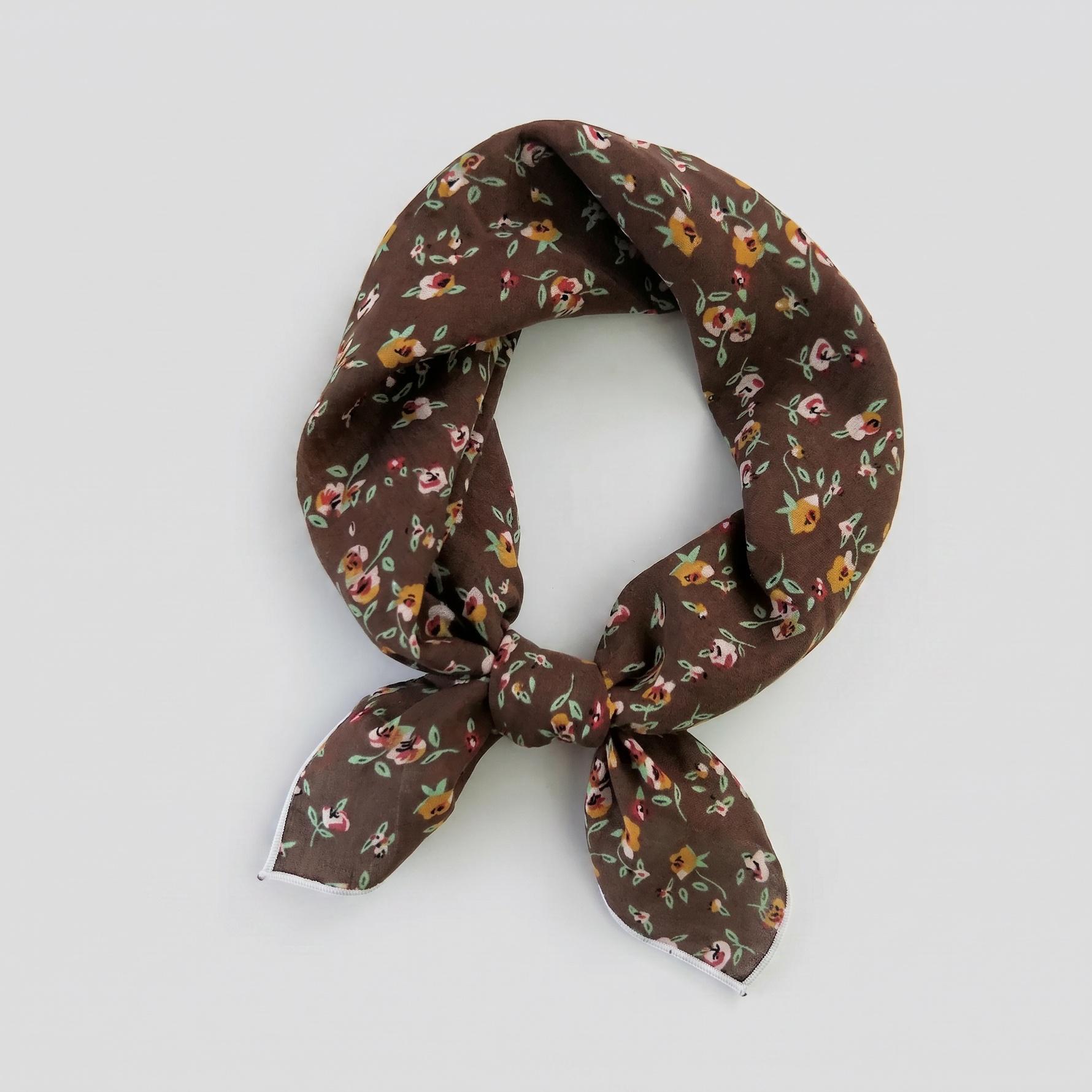 «Nordmarka Brun» | Brun Bandana med Hvite og Gule Blomster (55 x 55cm)
